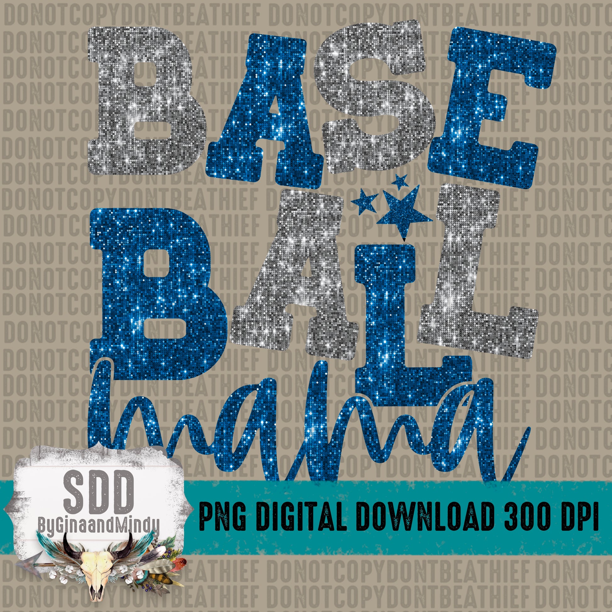 Baseball Mama Bundle With Stars; Blue & Silver (White)