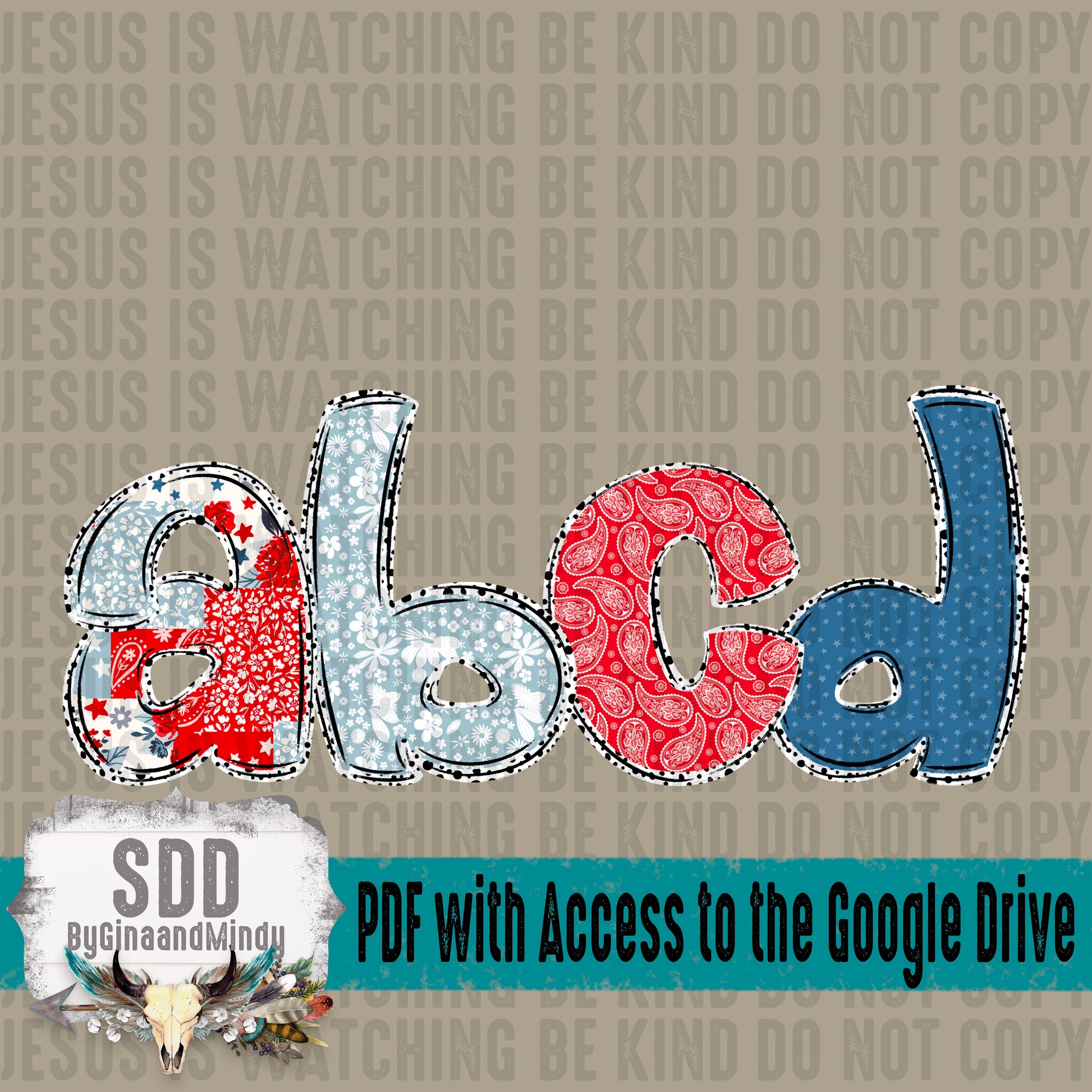 Patriotic Patches & Doodle Alpha (4 Set Uppercase & Lowercase, 0-9, + Special Characters)
