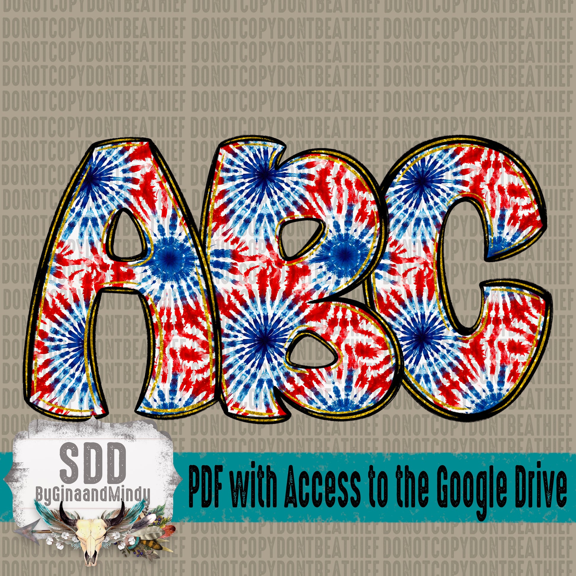 Patriotic Tie Dye Doodle Alpha Set (1 Set Uppercase & Lowercase, 0-9, + Special Characters)