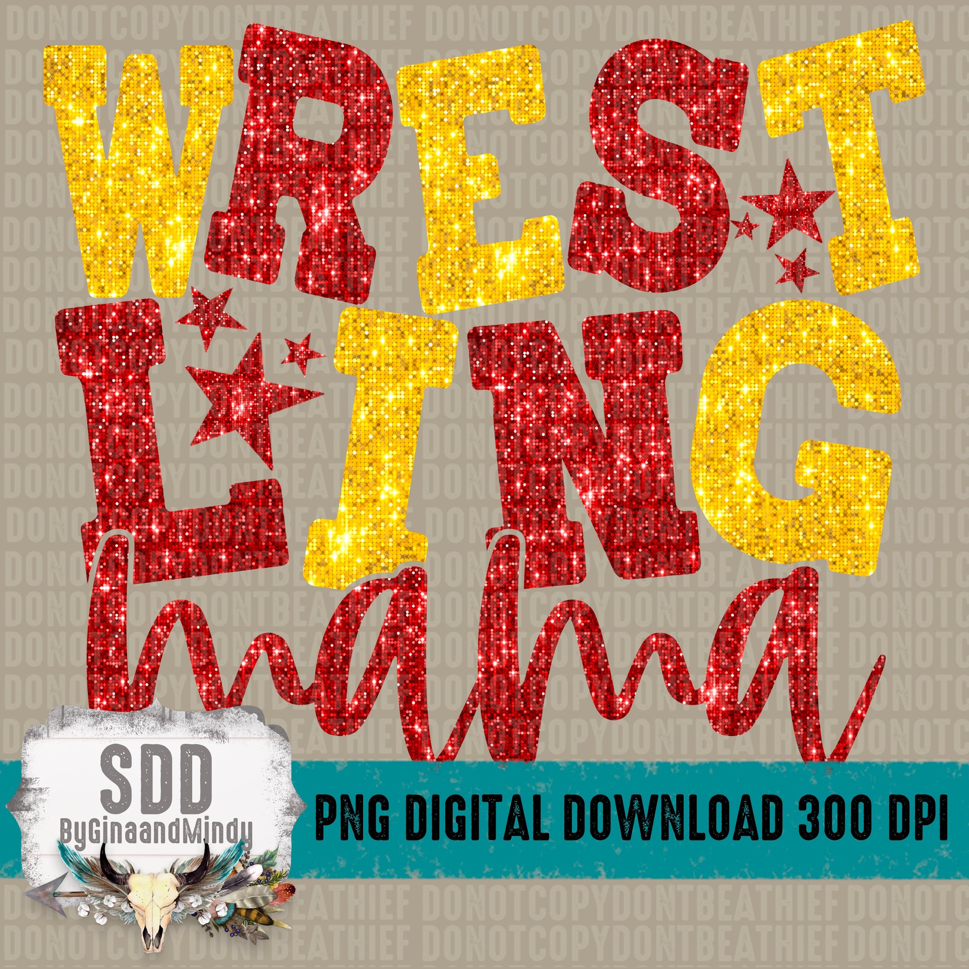 Wrestling Mama Bundle With Stars; Red & Yellow Gold